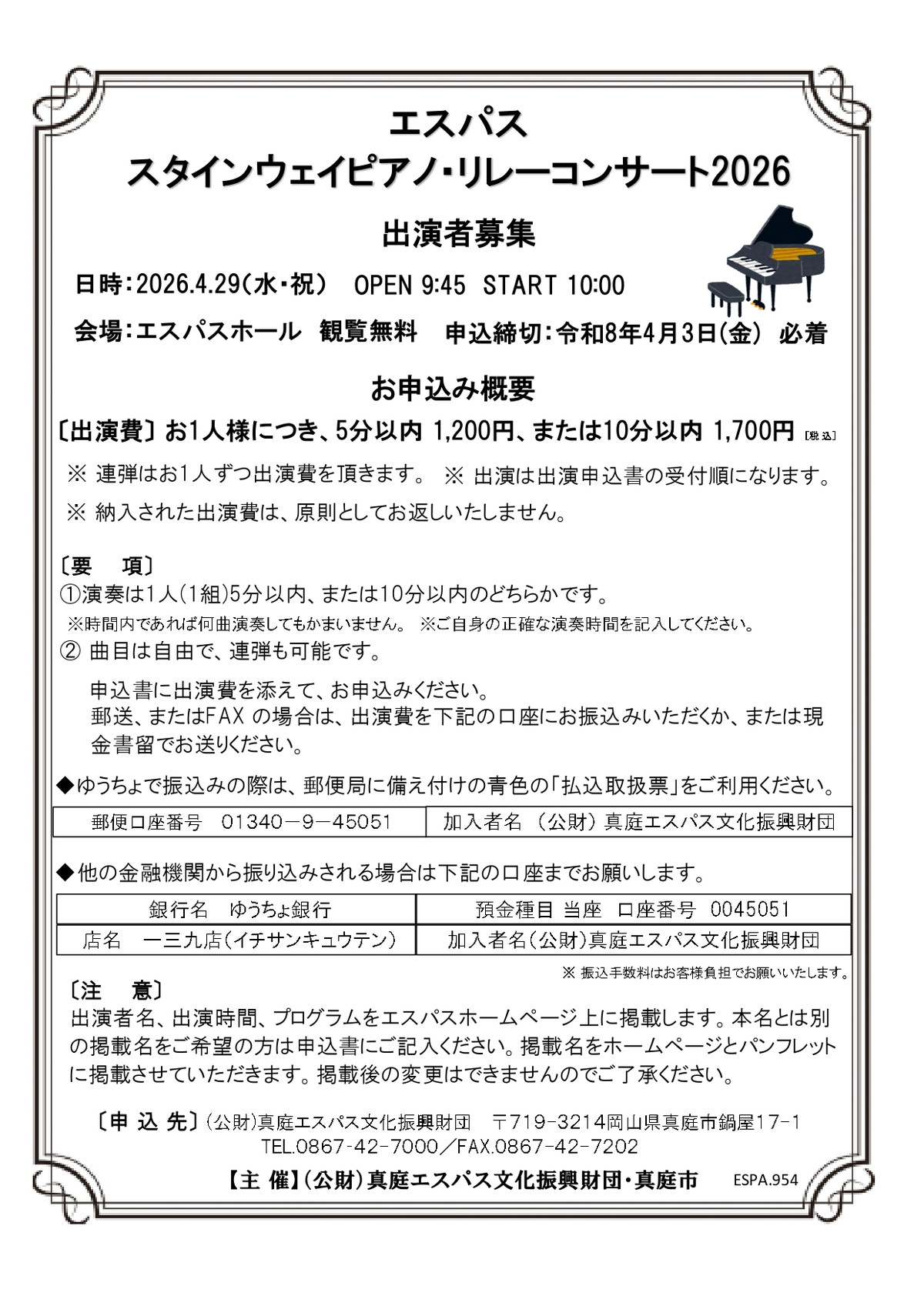 - 2025.10.02 令和8年度前期 エスパス芸術文化助成事業の募集を行います。